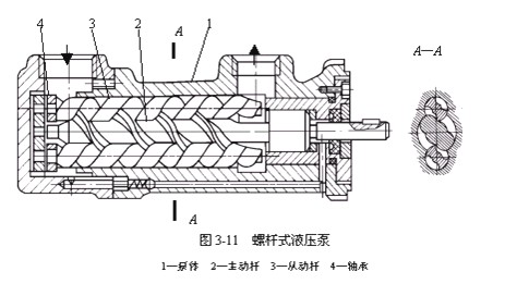 螺桿泵嚙合線較長,吸、排油口之間的封油長度大,所以容積效率高,工作壓力高達20MPa。螺桿泵結構緊湊,工作平穩(wěn),噪聲小,常被用于精密機床液壓系統(tǒng)。其缺點是螺桿精度要求高,加工較困難。