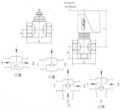 4、閥體及驅(qū)動(dòng)器必須安裝于垂直方向±60℃范圍內(nèi),其上方應(yīng)至少有30mm空間用于拆裝。 與周圍管道、設(shè)備 、建筑物必須保持足夠的維修操作空間,同時(shí)必須安裝在維修人員通過檢修孔能觸及到的地方。