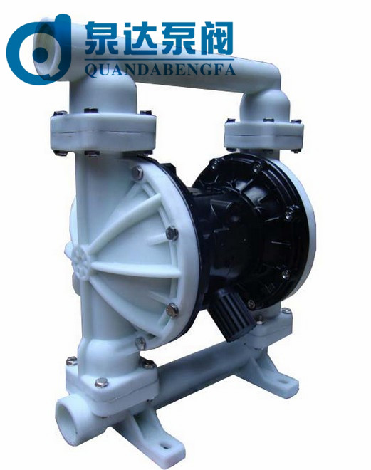 氣動工程塑料隔膜泵是永嘉縣泉達(dá)泵閥制造有限公司生產(chǎn)的一種新型輸送機(jī)械,工程塑料隔膜泵主要用于輸送偏酸性的液體及用戶要求泵整機(jī)重量偏輕的工況,重量輕便于移動。氣動隔膜泵已被國內(nèi)一千多家石油、化工、電子、陶紡織系統(tǒng)單位采用,安置在種特殊場合,用來抽送各種常規(guī)泵不能抽吸的介質(zhì),均取的了滿意的效果。 泉達(dá)生產(chǎn)的工程塑料氣動隔膜泵也稱聚丙烯氣動隔膜泵是目前國內(nèi)最新穎的一種泵類。我們公司設(shè)計的該款泵是采用壓縮空氣為動力源,對于各種腐蝕性液體,帶顆粒的液體,高粘度、易揮發(fā)、易燃、劇毒的液體,均能予以抽光吸盡。其性能參數(shù)與聯(lián)邦德國的 WLLDENPVMPS、美國的MARIOWPUMPS相近.本廠目前已形成系列化生產(chǎn),共有八種規(guī)格直徑:¢10mm3/8"、¢15mm1/2"、¢25mm1"、¢40mm11/2"、¢50mm2"、¢65mm21/2"、¢80mm3"、¢100mm4"。四種材質(zhì)、鋁合金、鑄鐵、不銹鋼、工程塑料隔膜泵。塑料隔膜泵根據(jù)不同液體介質(zhì)分別采用丁晴橡膠、氯丁橡膠、氟橡膠、聚四氟乙烯。以滿足不同用戶的需要。